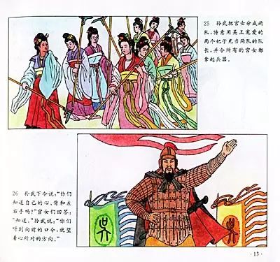 孙武派人把两个组长带上来(古时打仗每队都有组长),这两个组长有背景,不是别人,是吴王最喜欢的两位爱妃,孙武质问两个组长:你们可知罪?你们演练不到位!