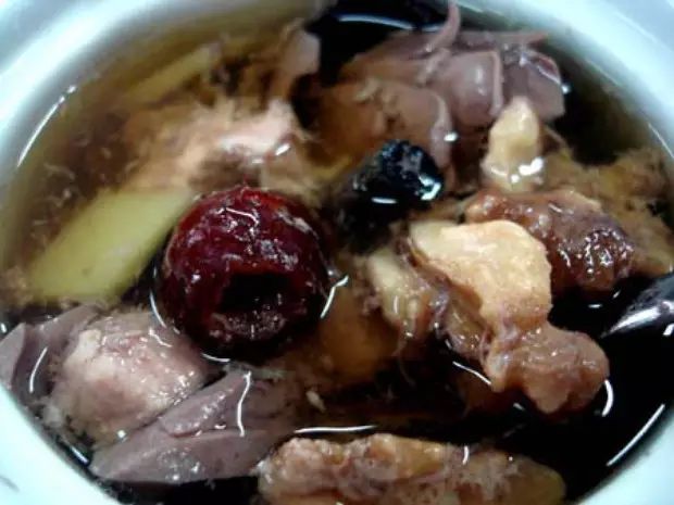 4. 把全部用料一齐放入瓦锅内,加清水适量,武火煮沸后,文火煮一小时,调味即可。