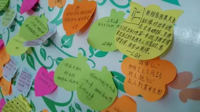 培训过程中,每个学员根据自己学习到的,觉得感触很深或者对工作有帮助的,都记录了下来,贴到了思想之树上。