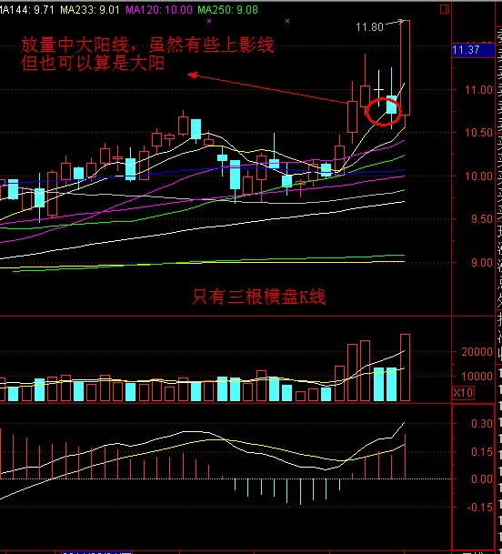 3. 横盘震荡K线的最低价不能低于阳线的最低点