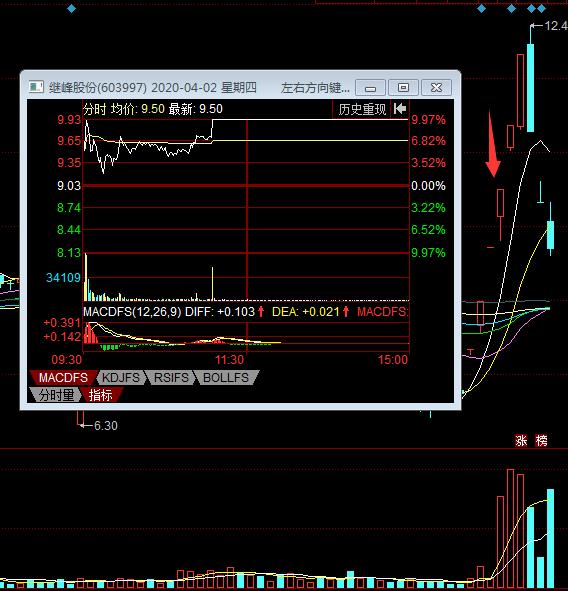 继峰股份,新能源车、特斯拉及次新股等题材,市值92亿,盘子6.32亿股。K线走势上,首板一字板略有放量,二板放量分歧涨停,三板略有放量涨停转一致,四板继续分歧放量涨停。该股也是4月份的强势股,最终六连板涨停后结束升势。