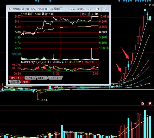金健米业,农业、乳业等题材,市值66亿,盘子6.42亿股。K线走势上,技术形态是回抽走势,其后的首板涨停为信号,3月25日反包涨停带突破前期高点平台,其后的再震荡再反包开启了连续涨停之路,成为4月份的大牛股。该股也是农业类的领涨股。