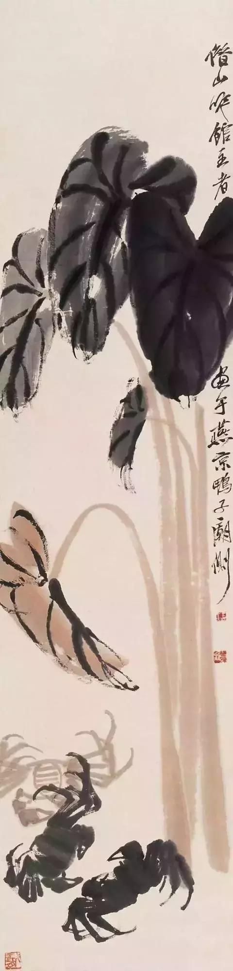 题款:老夫今日喜开颜,赊得霜螯大满盘。强作长安吟咏客,闭门持盏把诗删。余居燕年久,商家渐渐相识,能赊货物。齐璜白石山翁并题记。
