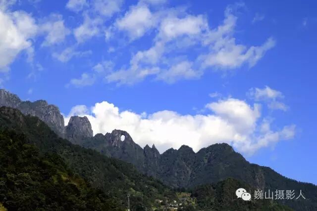 从福贡县城乘车,沿怒江北上30余公里,到达石月亮乡附近,路边有个观景台,在这里就可以看到一个透着白云蓝天的石洞,这就是怒江充满神奇色彩的石月亮。