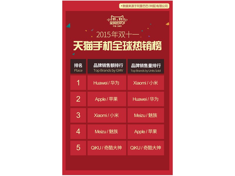 如上图,天猫给出了2015年度双十一的手机热销榜。看到榜单后,自然是几家欢喜几家愁!但是在这个榜单的背后,国产手机厂商想要得到什么?而他们又是否如愿了呢?