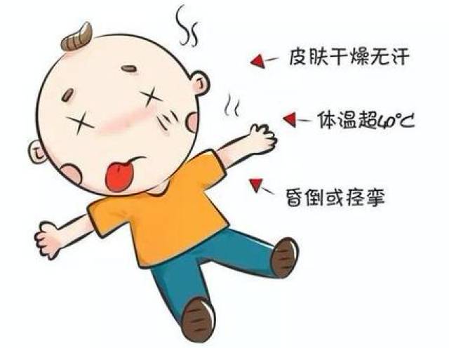 病初患儿出汗较多,继而因出汗太多可能引起丘脑下部和汗腺功能失调,皮肤反而无汗,干而灼热,面部潮红,无汗时患儿体温往往会进一步迅速升高。同时伴有口渴,精神萎靡或烦躁不安,有的患儿又出现惊厥和昏迷,严重时并发脑水肿、呼吸衰竭、循环衰竭和重要脏器功能损害。