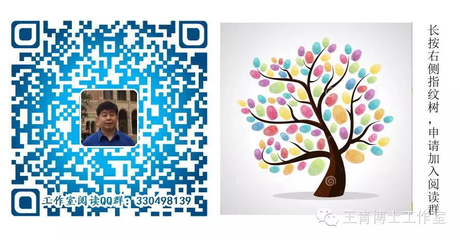 王青博士工作室阅读俱乐部群: 330498139(新群,可加群直接听讲座。也欢迎大群朋友加入,先占个位。阅读俱乐部活动圣诞时节展开,适合5-9岁孩子的英语学习。)