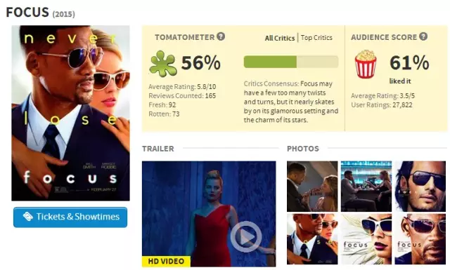 《焦点》在烂番茄网站新鲜度56%,观众喜爱程度61%。