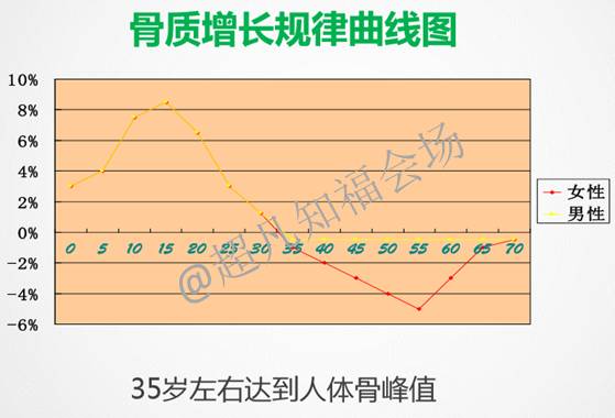 是35岁,在35岁的这个时间点上,我们人体里的这个骨的量叫做骨峰值。就是你体内骨的含量,这一生最高峰的时期就叫做骨峰值。大家房住一句话,一个人,如果骨峰值越高,则他到老年的时候发生骨质疏松的几率就越低。这点我说的明白说不明白?其实对应我们刚才讲的这个账户的理论,就是说你年轻的时候给自己存的钱越多,你到老的时候花的就越安稳。那么,我想问大家,基于这个理论,你说35岁以前的人要不要补钙?虽然他这个时候没有任何骨质疏松的痛苦,也体会不了骨质增生有多难受,那我想问你他要不要补钙?要!为什么要?你要给自己积累那个骨峰值,说白了就是你要给你自己这个账户存钱呢,对吧?那我再问,35岁以后你已经不能再往里存钱了,那还要不要补钙?要!为什么?你都已经不能再增加你的骨质了?你为什么还要补钙呢?对了,你要减少你以后每天得用钙量啊,你不每日足量补钙,你就每天都得骨头里面掉落这些钙,能理解不?