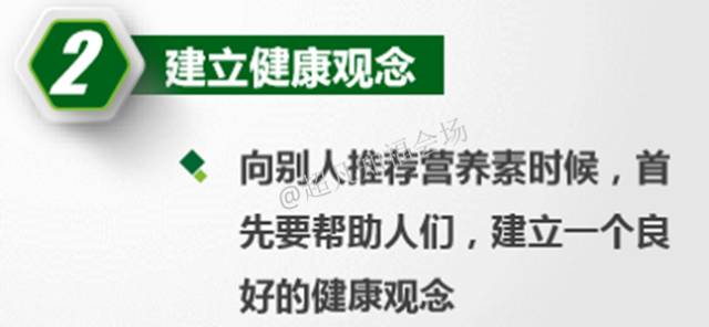 应该要以使用为最前提,用最简便的方法,先能够让他去使用起来,或许说这里面具体到某一个重要的营养素确实饭前会吸收好一点或者某一个确实饭后吃他的感受会舒服一点,但是当他感觉无所适从的时候,请大家一定注意,要给她一个最简便的建议,只有简便才容易坚持,只有坚持才能够让它持续不断的使用,才能最终见到营养素对他机体良好的那个作用。当他真的见到了自己肌体哇确实因为使用营养素忘带给了我良好的感受,让我更加获得健康,他才愿意继续坚持使用营养素,却而且他也愿意把他的这种健康的观念再分享给他周围的人,所以请大家一定要记住,在于向别人推荐营养素的时候,我们首先要帮助人们建立一个良好的健康观念。
