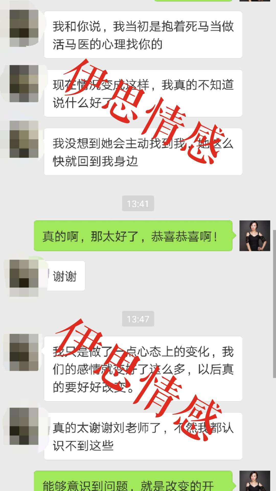 委托人按照老师的指导,一步一步的成功挽回了自己的爱情,委托人也说“真的是用对了方法,才能挽回!刘老师教了我很多,甚至让我感觉我现在才开始真正的了解女友。”