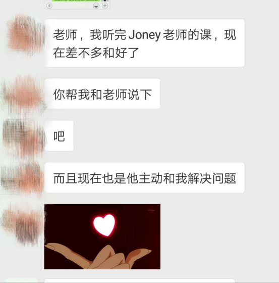 就像前段时间,有一个委托人,她认真听了Joney老师的《关系修复》课程后,就成功和男友复合了。
