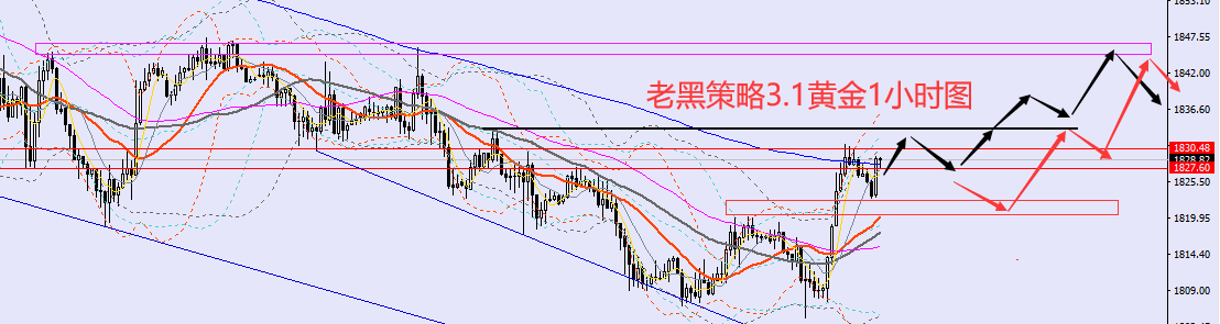如果日内黄金持续站稳1830上方运行,那么后期随着时间推移,多单参与点位适度抬升,具体策略有待实盘调整。