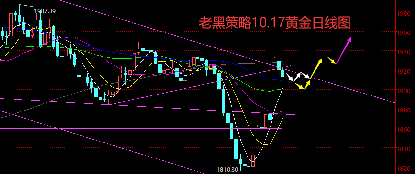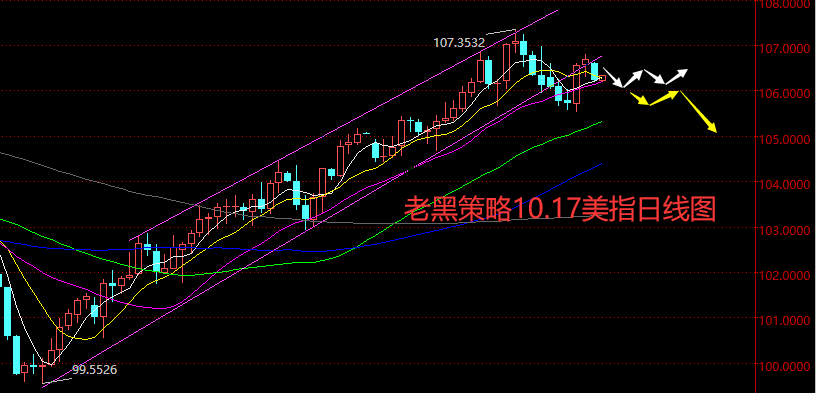 美指昨日持续震荡回修,晚间美联储人员讲话继续偏鸽,美指也继续偏弱震荡,日线虽收得一阴线,但依然还是站在日均线带上方,整体走势符合预期的围绕均线带进行反复争夺确认。预期短期内美指还会继续震荡消化,以等待本周其他美联储人员讲话来做方向引导,从目前状态来看,讲话基本转向偏鸽,这也加剧了市场对11月初不加息的预期,对于美指走势是有一定的打压的,但是讲话类的消息存在很大的人为变数风险,所以本周对于美指还是务必要谨慎的。