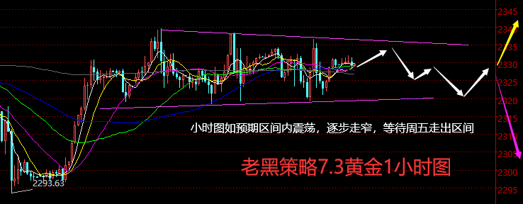 小时图上,近期黄金也如预期的呈现横盘震荡,上方有2340短压,下方有2320支撑,且区间有逐步在缩窄的迹象,再结合本周的基本面事件,很有可能今明两日在美盘休市的情况下,黄金会继续延续区间内震荡,最终去等待周五非农数据做方向上的引导。不过需要注意今晚小非农ADP数据,也是有可能会改变市场对非农数据的预期情绪的,加之美盘休市降低了市场的活跃度,所以反倒这种特殊的交投环境更容易被市场某一方所控制,从而造成行情出现超出预期的异常波动。