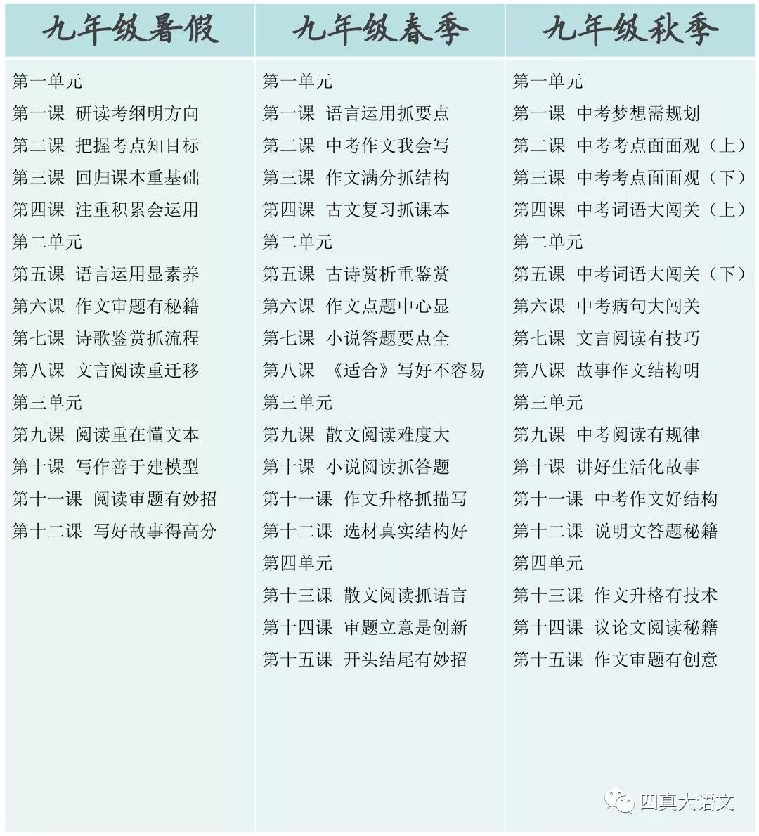(2)秋季教材和春季教材(各15课时),分四个单元,每4课时一个单元,第四单元3课时。