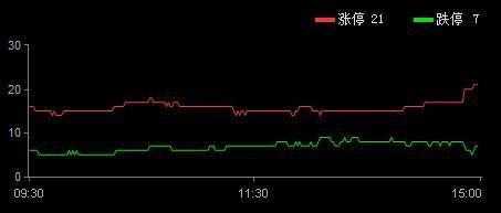 今日涨停家数21家(不包括ST股21家),跌停7家;