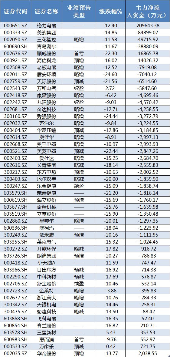 格力电器、美的集团、青岛海尔等这些2017年吸引无数投资者眼球的个股,在最近一波的下跌阶段,均出现了大量的资金净流出,同时股价也出现不小的回落。但是在同一板块中,在之前的上涨阶段,表现并没有他们抢眼的家电股,在本轮的下跌中,开始出现了资金的净流入。华帝股份、万家乐等均受到了资金的流入。
