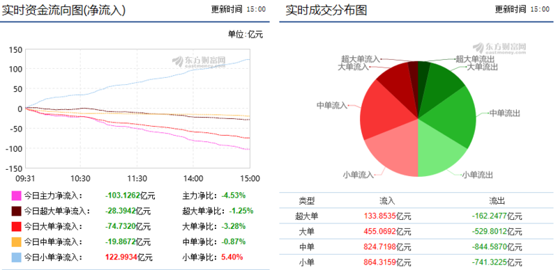 根据东财统计,截止收盘,沪深两市主力资金呈现净流出状态,当日沪深两市资金净流出103.1262亿元。其中,超大单净流出28.3942亿元,大单净流出74.7320亿元,中单净流出19.8672亿元,小单净流入122.9934亿元。从资金流向来看,主力资金呈现净流出状态。今日资金净流入前十名行业情况如下: