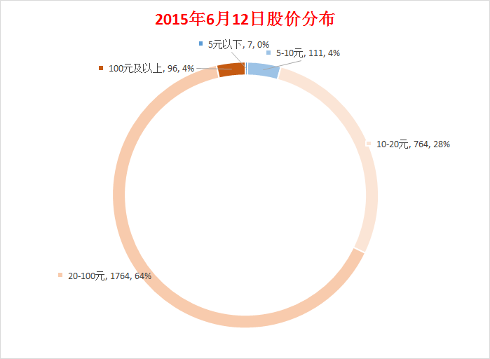 2015年6月牛市顶部时,百元以上高价股有96只,占比达到4%,20元至100元之内的股票是主流,10元至20元的股票占比其次达28%,5元至10元股票仅111只,占比4%,5元以下股票仅7只。从数据看,目前与牛市顶部还相差甚远,虽然本次市场上涨未必能到2015年6月的水平,但数据还是非常有参考意义的。