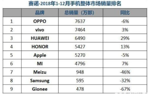 近年来随着智能手机新技术的发展放缓,使得消费者换机欲望降温,使用周期拉长,整体手机市场销售量下降,但是从市场数据可以发现手机市场集中度在逐步提升。