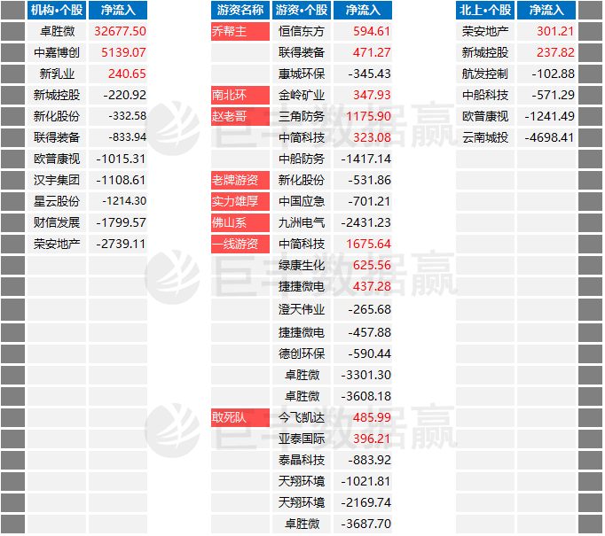 主流资金个股动向:单位[万元]