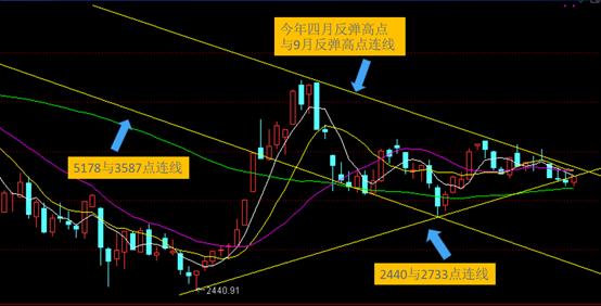从上图可以看到,在今年的一季度,由于市场出现的快速上涨,并且伴随着成交量的放大,指数突破了从2015年以来的反弹趋势线,这也就意味着市场很有可能进入新的运行周期,随后指数一直保持着窄幅的区间震荡,并且没有跌破2015年5178点以来的趋势性,这也就意味着,突破已经确立了,即使后期市场再次回落,那么也已经不再是5178下跌的延续,而是新的运行周期。而目前市场在选择新的方向,是向上、向下、还是继续进行震荡。