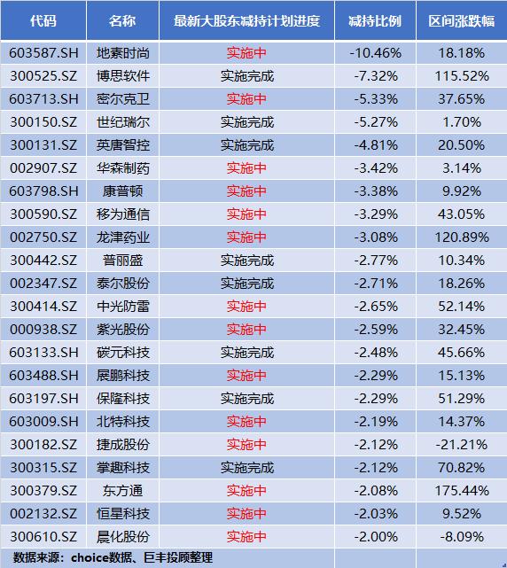最后,附一张上周刚发布过减持计划个股的一览(计划减持上限超过1000万股),仅供参考: