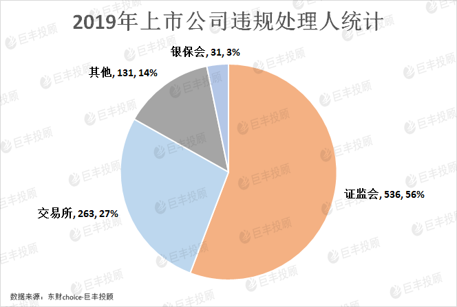 从处理人的角度看,证监会和交易所仍是处理人主体,分别处理了536次,占比56%和263次,占比27%。银保会今年也做出了31次处罚,占比3%,另外14%的其他处罚由其他机构做出。