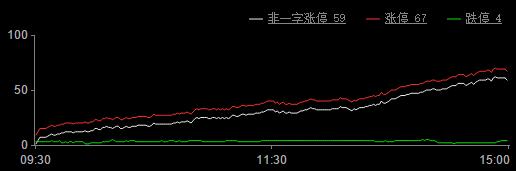 今日涨停家数67家(其中,ST板块涨停14家),跌停4家;