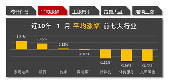 家电行业12月表现可圈可点,而历史上,1月份家电行业表现最为强势,平均涨幅1.21%。