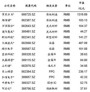 同兴达:公司主要从事研发、设计、生产和销售中小尺寸液晶显示模组。公司产品涵盖了COB、TAB、COG等LCD 模块产品,TFT、CSTN等彩色LCD显示产品,以及OLED显示产品。