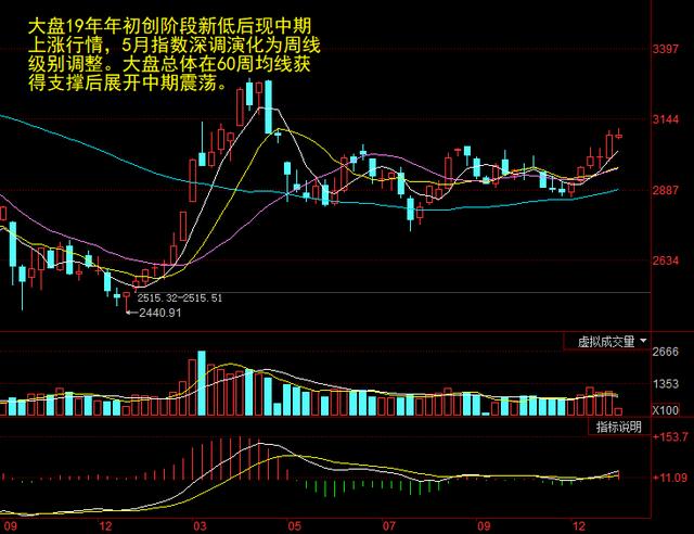 大盘18年10月份政策利好频出开始构筑阶段底部。19年1月份刷新阶段低点后开启周线级别的上涨行情。目前,中线上涨趋势延续,但市场遭遇黑天鹅技术性深调演化为周线级别的调整,进入中期震荡格局。
