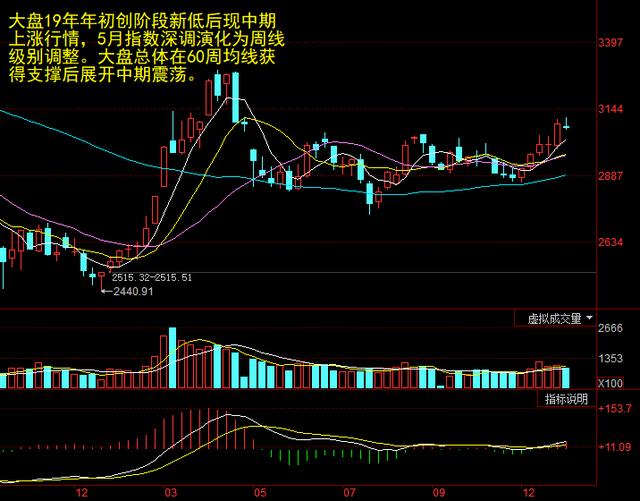 大盘18年10月份政策利好频出开始构筑阶段底部。19年1月份刷新阶段低点后开启周线级别的上涨行情。目前,中线上涨趋势延续,但市场遭遇黑天鹅技术性深调演化为周线级别的调整,进入中期震荡格局。