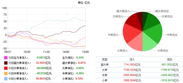 根据东财统计,截止收盘沪深两市呈现资金净流出状态,当日沪深两市资金净流出9.59亿元,今日超大单净流入33.10亿元,大单净流出42.69亿元,中单净流出40.98亿元,小单净流入50.56亿元。