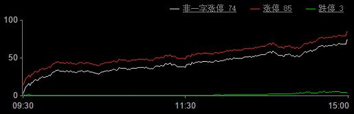 今日涨停家数85家(其中,ST板块涨停20家),跌停3家;