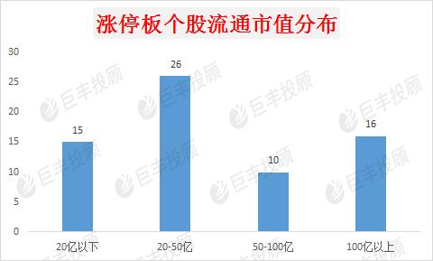 从流通市值的角度看,中小流通市值仍是出现涨停股数量最多的区域,并且今天这种现象还相对集中,今天50亿以下流通市值的个股数量达到41家,其中只有15家企业的流通市值在20亿以下,流通市值在50-100亿之间的个股数量今天出现10家,流通市值超百亿的个股出现16家。