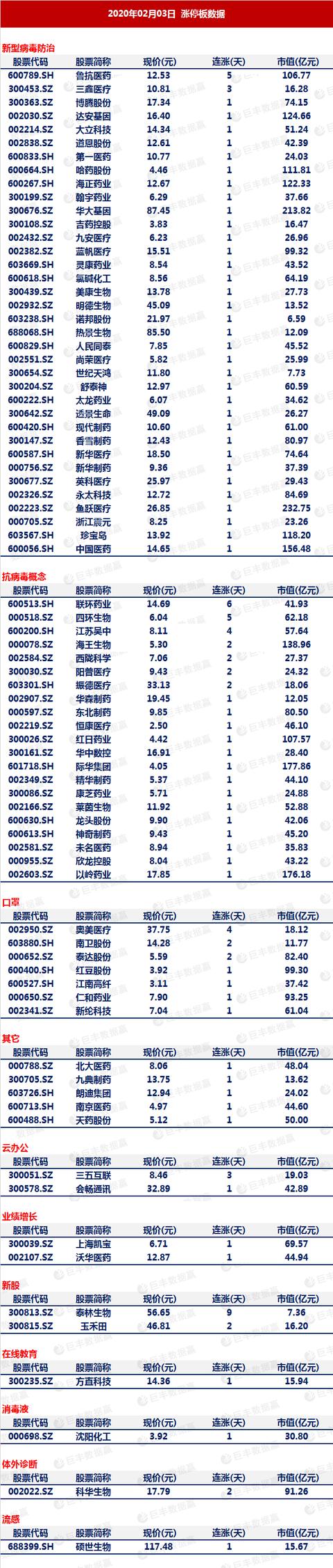 医药板块表现强势:哈药股份、联环药业、精华制药、博腾股份、南卫股份、四环生物、鲁抗医药、泰林生物、华大基因、达安基因、太龙药业、海王生物涨停。科创板中相关病毒防治个股走高:洁特生物涨逾60%,硕世生物、热景生物涨停,特宝生物、博瑞医药、普门科技涨逾10%。