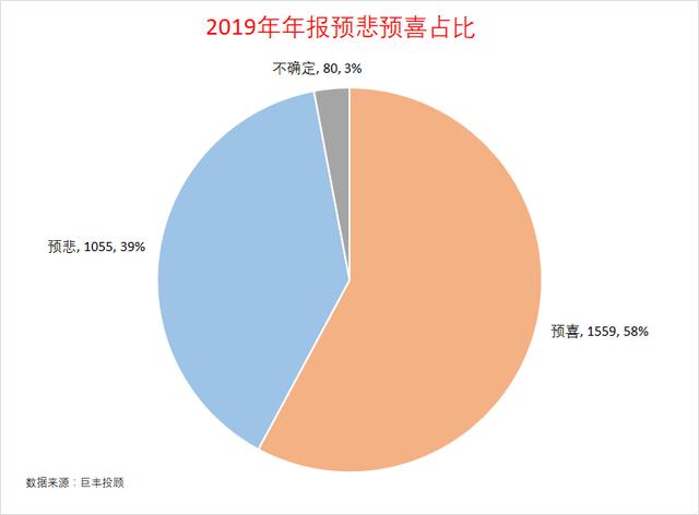 根据目前的数据,预喜率为58%,预悲率为39%,另外还有3%的上市公司不确定,从目前的情况看,预喜股占比最大。