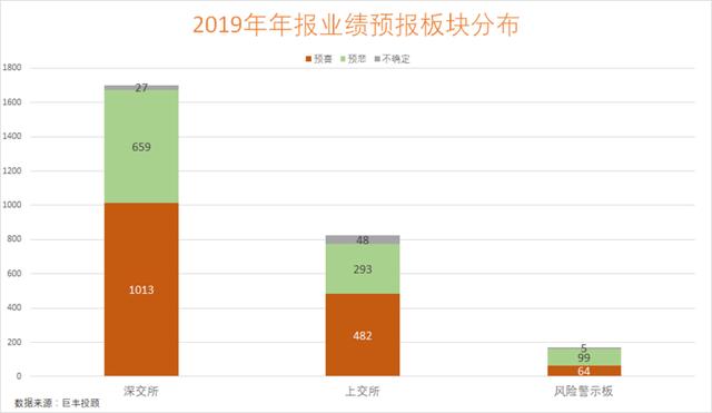 从板块分布看,深交所主板、中小板和创业板有1013家公司业绩预喜,预喜率高达59.6%,659家业绩预悲,占比38.8%,预喜率最高;上交所主板和科创板有482家公司业绩预喜,预喜率高达58.6%,293家业绩预悲,占比35.6%;风险警示板也有64家公司的业绩预喜,99家业绩预悲。