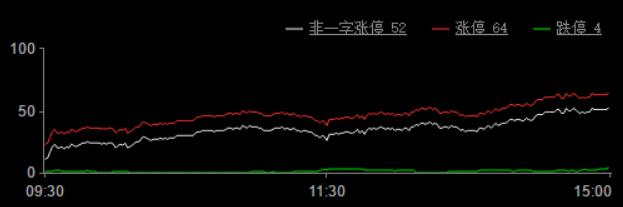 今日涨停家数64家(其中,ST板块涨停6家),跌停5家;