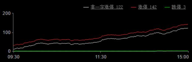 今日涨停家数142家(其中,ST板块涨停11家),跌停3家;