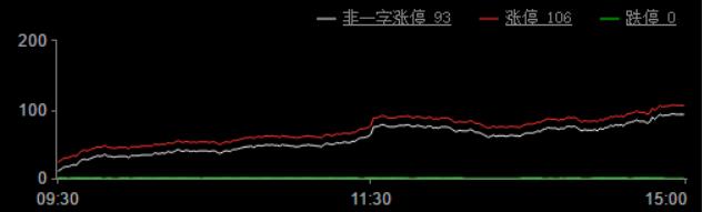 今日涨停家数106家(其中,ST板块涨停4家),跌停0家;