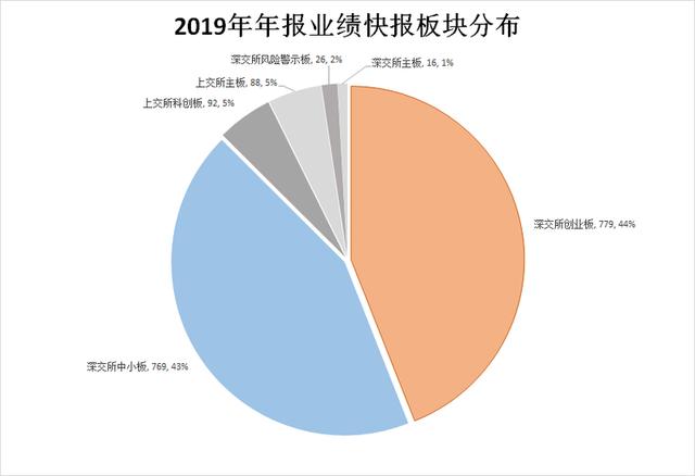 从目前的数据看,深交所的上市公司发布的快报居多,其中创业板779家上市公司公布了业绩快报,占比44%,另外中小板769家,占比43%,快报中87%是中小创上市公司,上交所的主板加科创板仅有180家公布了业绩快报,数量较少。
