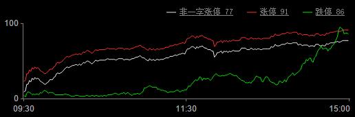 今日涨停家数91家(其中,ST板块涨停7家),跌停86家;