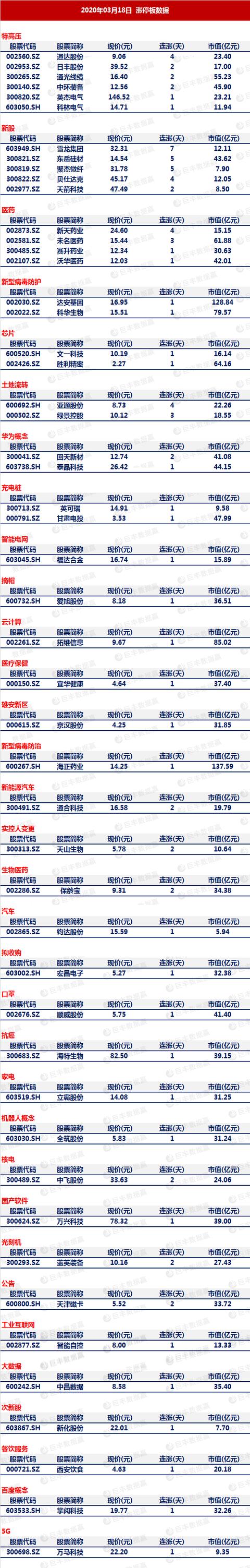 当前资金主要围绕新基建做文章,今日特高压板块6只个股涨停,通达股份4连板。前期龙头保变电气倒下后,通光线缆接力,7天6个板,现通达股份大有接力之势。充电桩板块、光刻胶板块亦成为短线资金的主要战场,与新冠病毒相关的医疗设备板块表现相对稳健,国外疫情形势严峻,获得欧美检测试剂出口证书的个股表现较强。总的来说,市场情绪和短线资金以特高压板块为主要发力