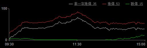 今日涨停家数53家(其中,ST板块涨停3家),跌停15家;