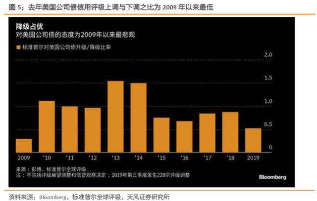 年以来最高。2019年,标准普尔下调了676家发行人的评级,上调352家,升级/降级比率为0.52, 为2009年以来最低,其中有580家的降级发生在高收益债类别,也就是说,低评级企业的债务状况在进一步变差。