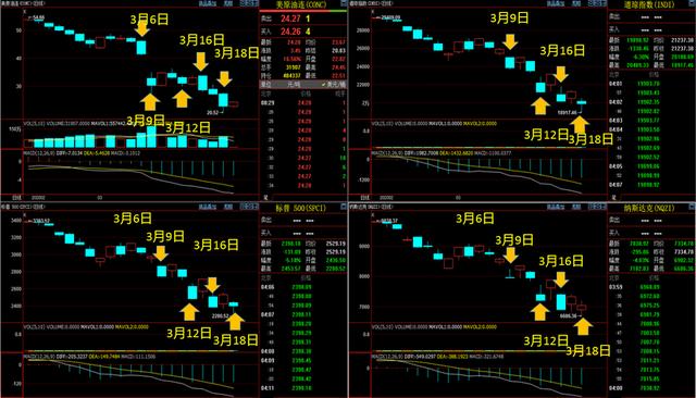 • 3月18日,美原油下跌16.25%,收22.89美元/桶,最低20.52美元/桶。