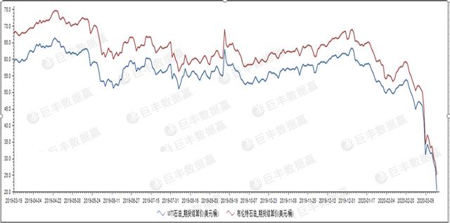 • 3月18日,美原油下跌16.25%,收22.89美元/桶,最低20.52美元/桶。